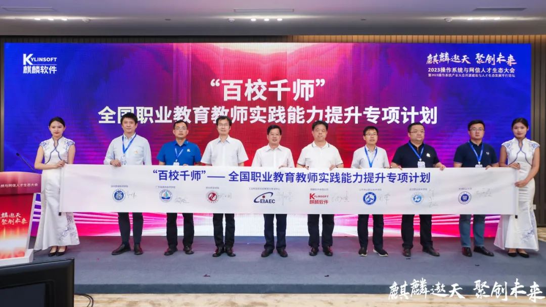 推动中国网信事业高质量发展,需要建设一支科教融合、产教融通、专业能力和实践能力都较强的教师队伍。去年5月,工信部教考中心与麒麟软件联合推出了面向广大教师群体的“百校千师”师资培养,当年完成全国267所院校的千余名教师培训工作,广获好评。在今年7月举办的2023 操作系统与网信人才生态大会上,工业和信息化部教育与考试中心联合麒麟软件和六所高校共同发布了“百校千师”——全国职业教育教师实践能力提升专项计划,开启了全国范围内的麒麟操作系统师资培训活动。