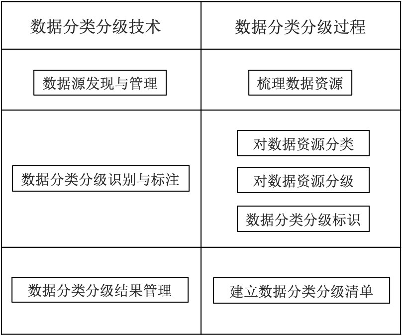数据分类分级技术与数据分类分级过程的对应关系