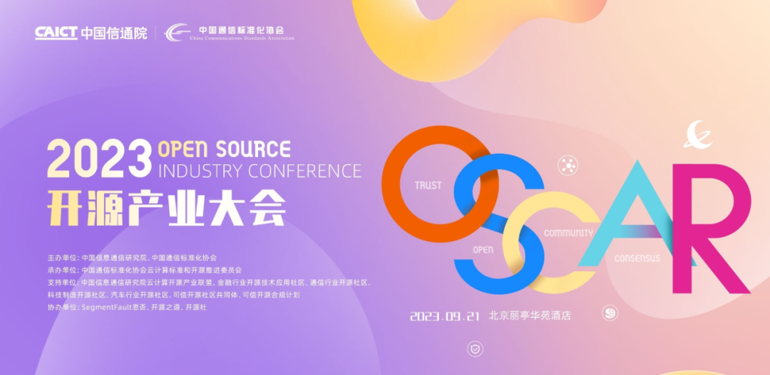 会议名称:2023 OSCAR 开源产业大会 会议时间:2023 年 9 月 21 日 会议地点:北京市海淀区丽亭华苑酒店