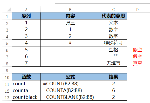 Count、counta、countblack三个计数函数针对的对象不同,其定义如下