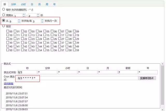 cron是一种表达式,具体的写法规格有兴趣的可以去学习一下,不懂也不影响使用,直接按照示例就可以类推,写出自己想要的,也可以直接使用在线生成。