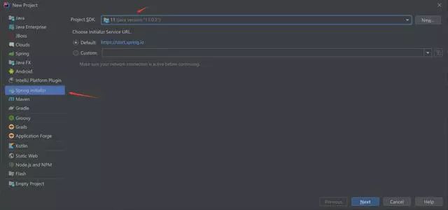 选择Spring Initializr,然后选择SDK