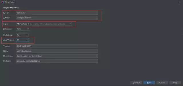 这里主要填写Group 、Aritifact,然后我选择maven项目,java作为开发语言,java版本,这些填好后,下面有些会自动生成,就不用填写了。