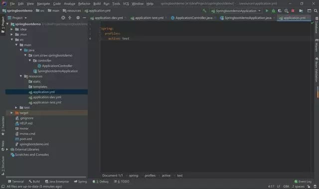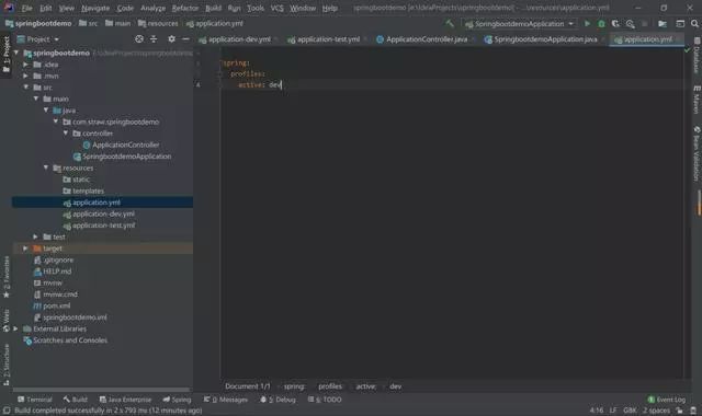 下面来看看效果,首先在application.yml中指定dev文件