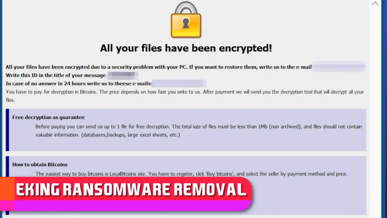 [bkpsvr@firemail.cc].EKING 是一种新型勒索软件类型病毒,属于Phobos 恶意软件家族。安装后,它会加密系统上的所有文件,并向其附加受害者的 ID、decphob@tuta.io 电子邮件地址和 .eking 文件扩展名。因此,名为 document.jpg 的文件将被重命名为document.jpg.id[9Y836L01-13453.[decphob@tuta.io].eking,[bkpsvr@firemail.cc].EKING。然后,病毒会在屏幕上启动 info.hta 窗口,并在计算机系统中留下 info.txt 文件,以告知受害者有关网络攻击以及犯罪分子解密数据必须满足的要求。就像典型的勒索软件程序一样,它要求支付赎金以换取数据恢复工具。