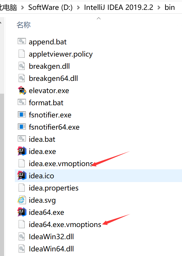然后打开bin目录下的idea64.exe.vmoptions和idea.exe.vmoptions文件,在文件最后加上