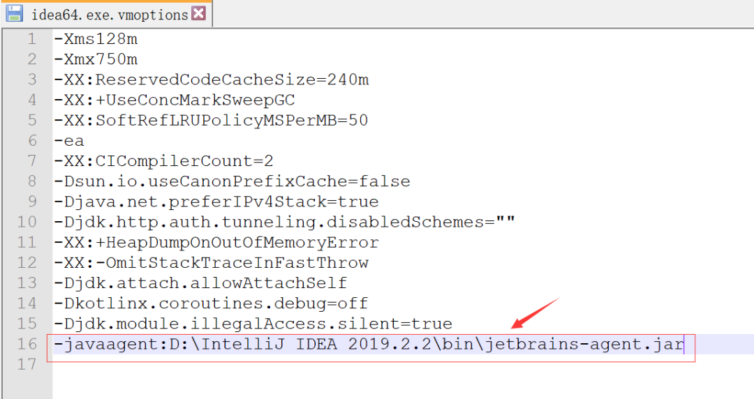 -javaagent:D:\IntelliJ IDEA 2019.2.2\bin\jetbrains-agent.jar