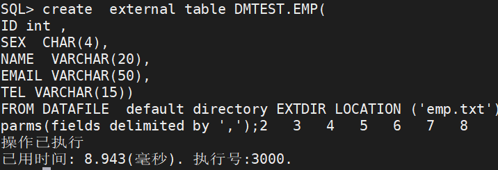 FROM DATAFILE '/dm8/data/emp.txt'