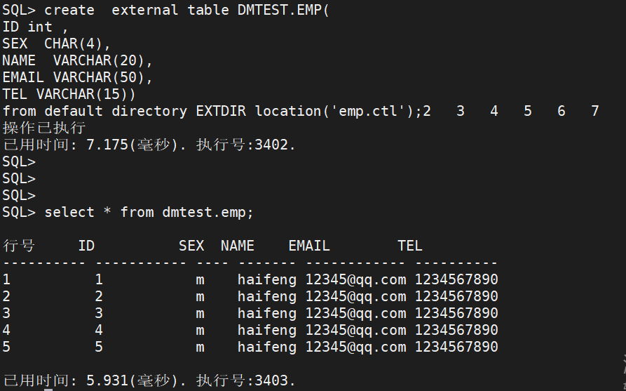 4、执行外部表创建和导入数据语句: