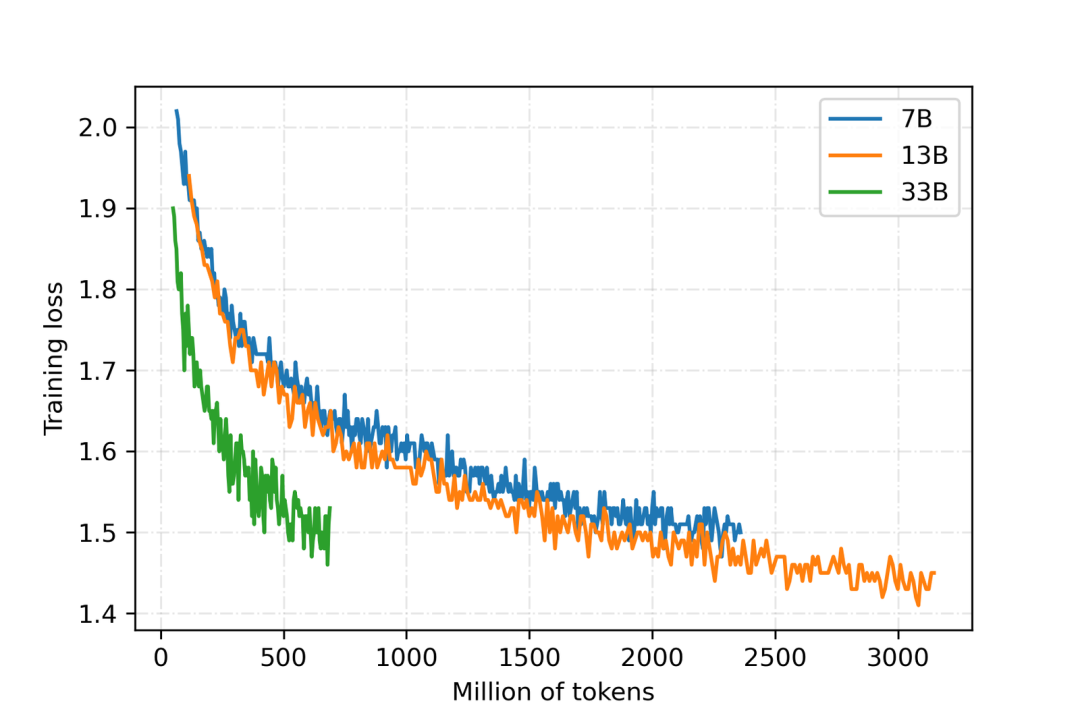 伶荔说语言模型利用TencentPretrain多模态预训练框架[4],集成DeepSpeed ZeRO3以FP16数据并行训练。目前已开放7B、13B、33B模型权重,65B模型正在训练中。模型仍在持续迭代,将定期更新,损失收敛情况如图所示: