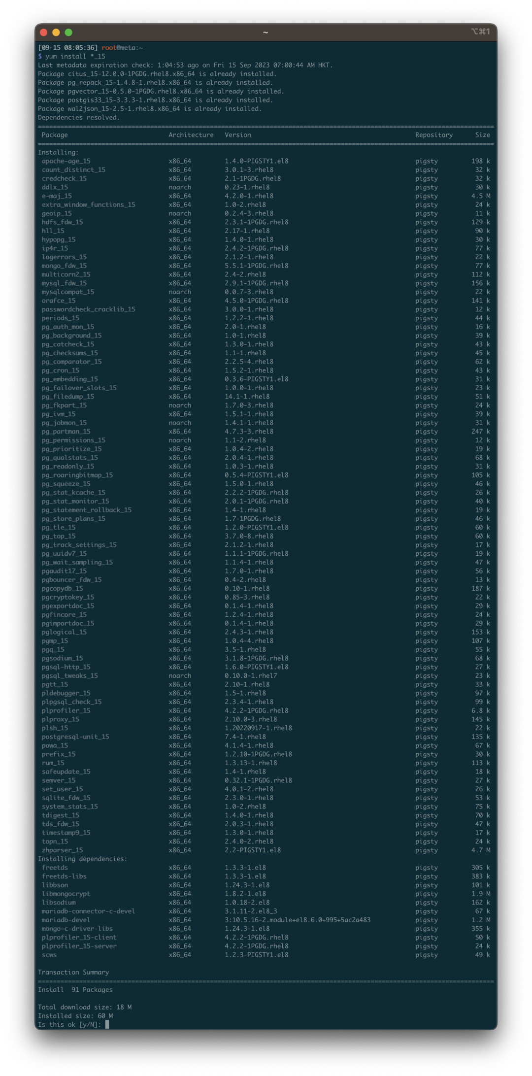 不过要注意的是,PGDG 官方仓库目前决定在 PostgreSQL 16 中放弃对 EL7 的支持,所以 PG16 仅在 EL8 与 EL9 及其兼容操作系统发行版中可用。