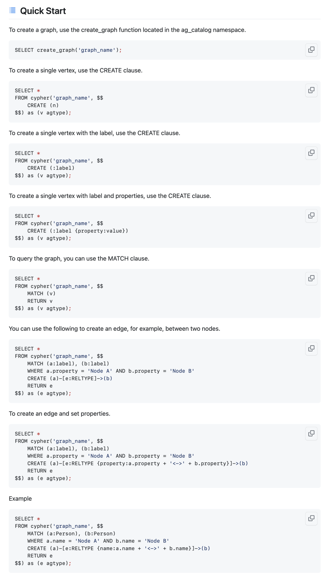 例如,您可以使用 AGE 为 PostgreSQL 加装图数据库能力,创建 Graph,并使用 Cypher 查询语言与 SQL 语言一起探索图数据,实现 Neo4j 的效果。