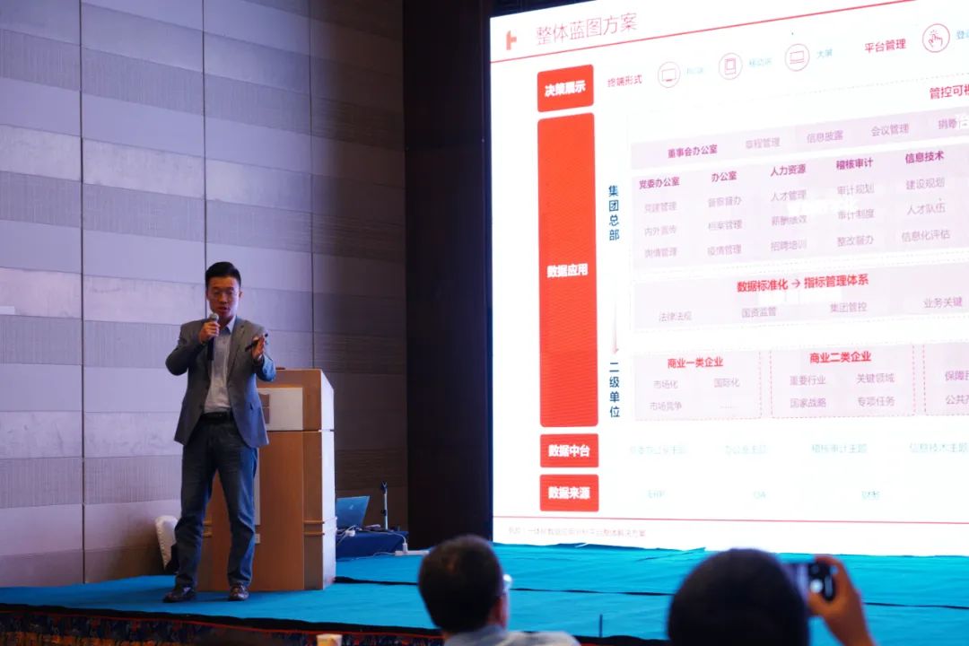帆软软件有限公司国资行业解决方案负责人杨新伟介绍了《帆软一体化大数据应用分析平台整体解决方案》。针对国有企业面临的缺乏一体化数智决策分析平台的数据应用难点,帆软一体化大数据应用分析平台整体解决方案以数字化战略支撑、数据资产化落地、数据主题化构建、数据场景化应用为总体定位,明确移动指挥(关键指标,一手掌握)-上屏作战(实时掌控、动态交互)-业务仿真(深化应用,业财实税一体)-数字孪生(技术驱动,数智赋能)的数据应用总体建设路径,为业务提供全新的数据应用分析方案,打造了智慧党建、国资监管、集团化管控、财务分析、资产分析、业务仿真等应用场景,助力企业实现战略支撑、管好经营、盘清家底、主动预警、精准提效的业务价值。
