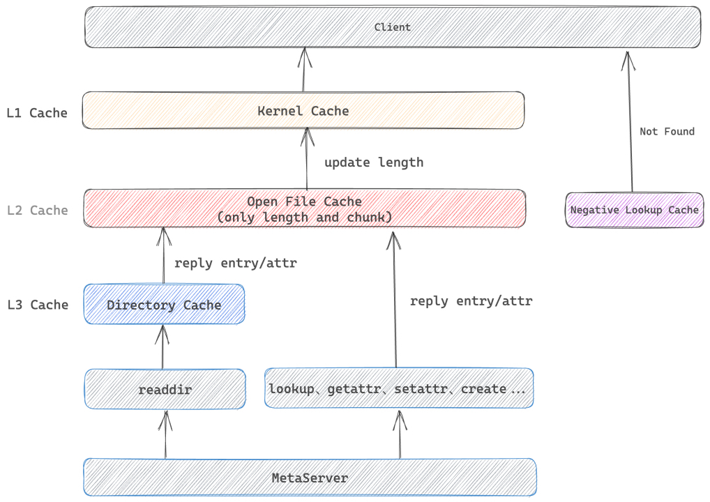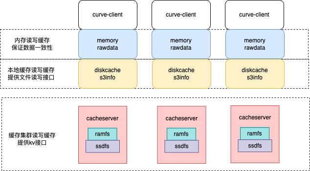 在工程实践中,由于 S3 和元数据集群都需要通过网络进行访问,每次读写操作都会经过网络,这可能会对业务性能产生负面影响。为了解决这个问题,Curve 共享文件存储系统在保证多挂载点一致性的情况下,进行了数据和元数据的性能优化,主要思路是增加缓存。