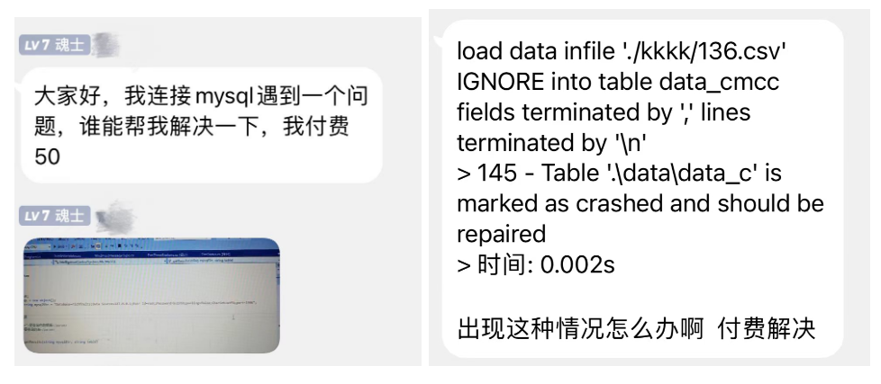 数据库技术群内经常有朋友会遇到各种各样的数据库问题,包含但不限于数据库安装、数据库故障等。遇到问题的朋友会在群内发出付费解决的需求,服务费会依据服务的难易以及紧急程度定价,大家可以根据自己的硬实力接单。这一种渠道的优势在于可以根据自己的时间灵活接单,缺点在于每月收入不稳定,也有群内竞价的可能性。