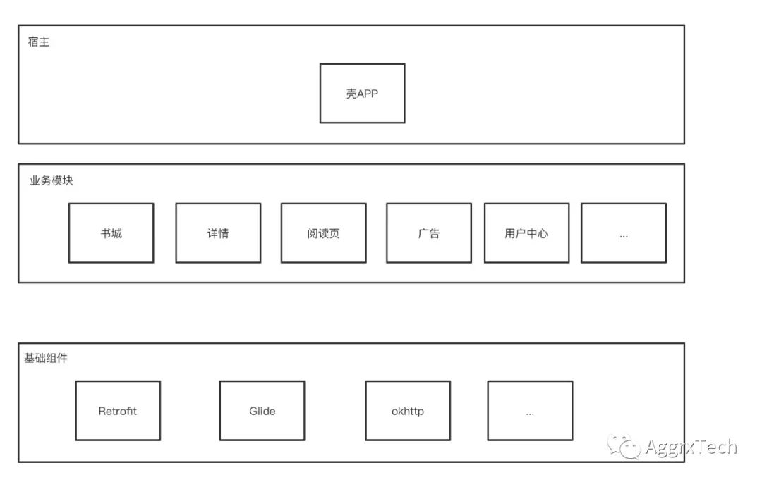 宿主:不做具体的功能实现,只负责组合业务模块,组装成一个完成的APP,即可以实现一套代码生成多APP