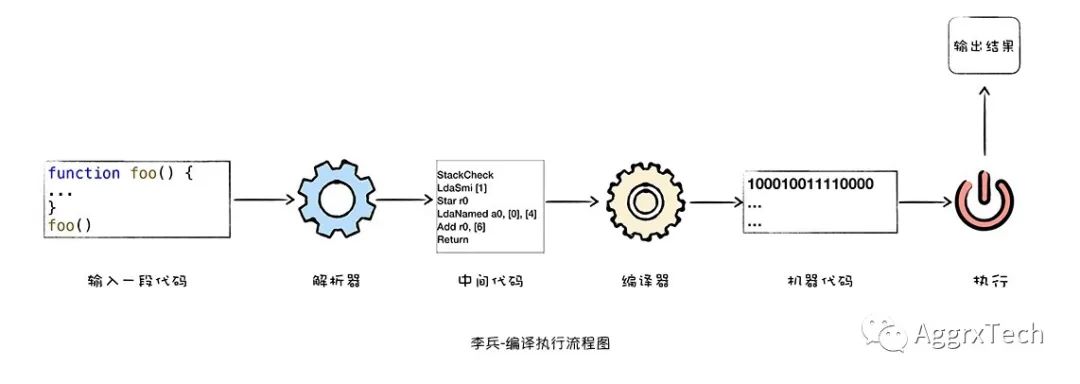 编译器:将抽象语法树(AST)编译为二进制的机器代码再执行。