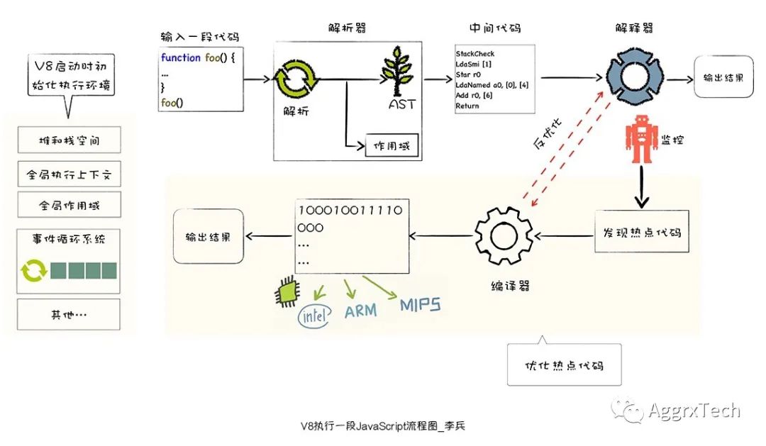 如果后期热点代码再被调用时时,那么 V8 会优先选择优化之后的二进制代码,这样代码的执行速度就会大幅提升。