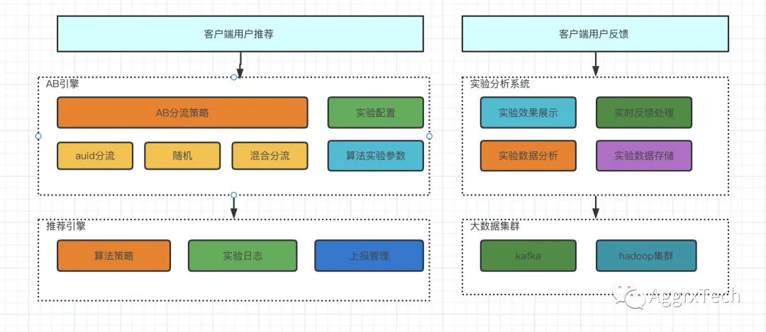 推荐算法中,包含了各种参数配置,通过修改参数的值来调整算法的效果,因此在AB实验中会对每个实验组绑定一组实验参数,通过分流和实验配置,把相应的算法参数传递给推荐引擎。