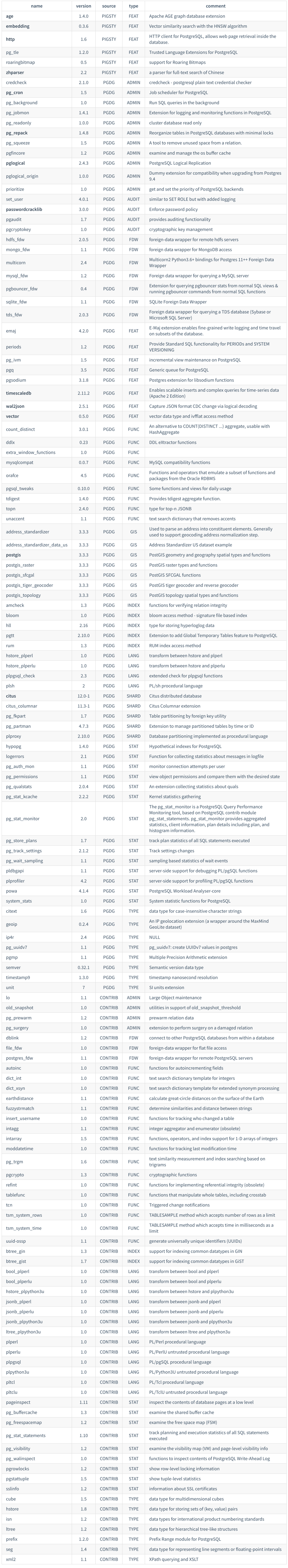 附录:Pigsty插件列表