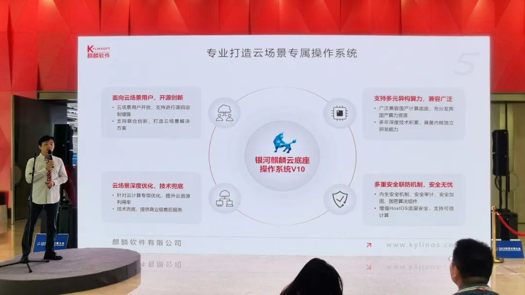 麒麟软件产品与社区发展中心副总经理杨汇成介绍,打造自主云操作系统是顺应时代发展、促进数字技术和实体经济深度融合,赋能传统产业转型升级的需要。麒麟软件充分发挥国产算力底座能力,依托独立研发团队和严密的内生安全机制,聚焦内核核心技术、积极投入云技术创新,打造面向云时代、沉淀云场景的新一代国产云底座操作系统。