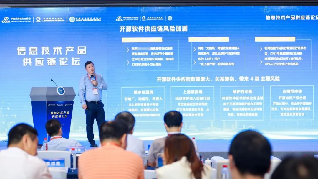 大会期间,还举办了多场专业交流对接活动。麒麟软件高级副总裁李祥凯出席信息技术产品供应链论坛,围绕操作系统供应链管理的实践和思考进行了主题分享。