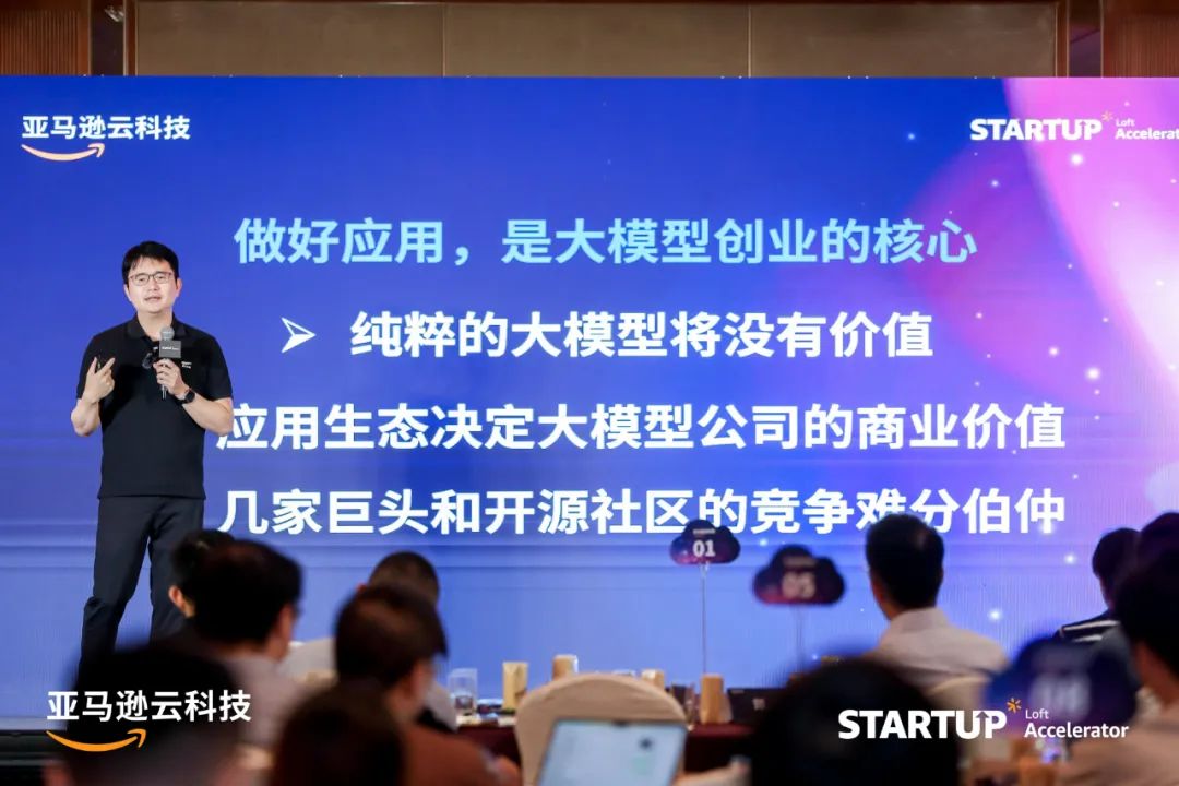 在本次开营仪式上,亚马逊云科技大中华区战略业务发展部总经理顾凡为入营企业带来了“致创业者:加速向未来”的主题演讲。亚马逊云科技在生成式 AI 的使命是“普惠”,助力各类企业降低构建生成式 AI 应用关键路径上的门槛。