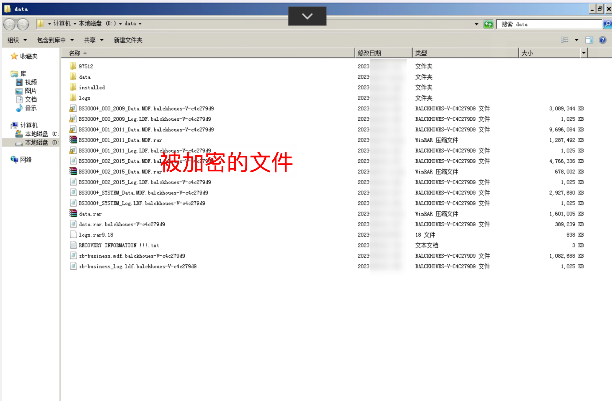 被.balckhoues-V-XXXXXXX勒索病毒加密后的数据恢复案例: