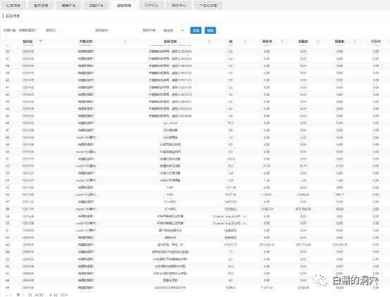 指标不仅仅是从这些视图采集原始值,而是需要经过二次加工,构建出多维度的指标。在我们这个实验环境中,我们从OSCAR 7.0中获得了600多个指标。利用这些指标,进一步做维度分析,构建出健康模型。