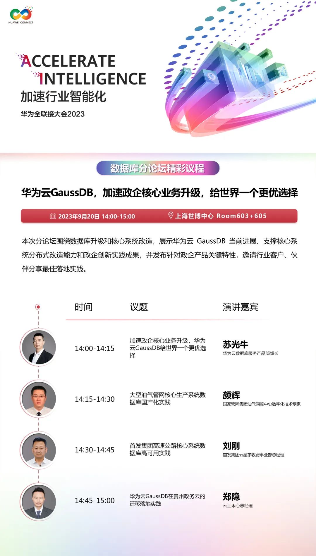 华为云数据库将在大会上组织专题论坛