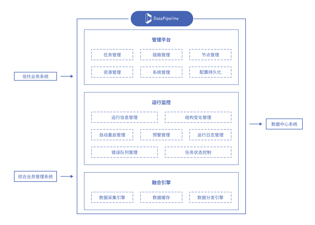 DataPipeline企业级实时数据融合平台适配了其包括Oracle、SQL Server在内的多种数据库管理技术,支持广泛的数据节点类型,协助中粮信托构建以业务目标为导向的数据链路,按需快速定制、部署、执行数据任务,以支持将信托业务系统和综合业务管理系统的数据实时传输到数据中心系统。