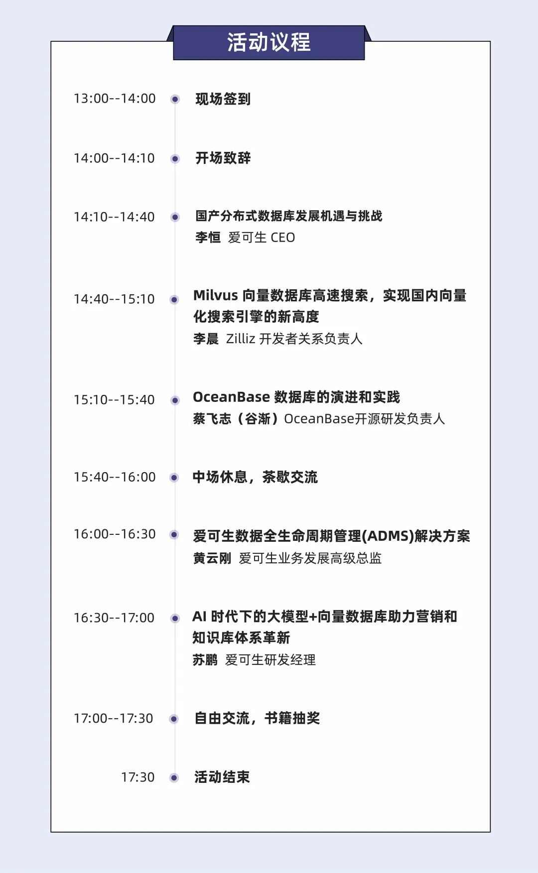 爱可生将于9月21日在上海举办技术会议“国产数据库与AI数据库的新机遇和发展趋势”,此次活动聚焦于云树®数据库ActionDB(基于OceanBase开源内核的商业发行版)及向量数据库TensorDB®的最新版本技术特性,旨在与开发者们分享行业趋势和技术特性。