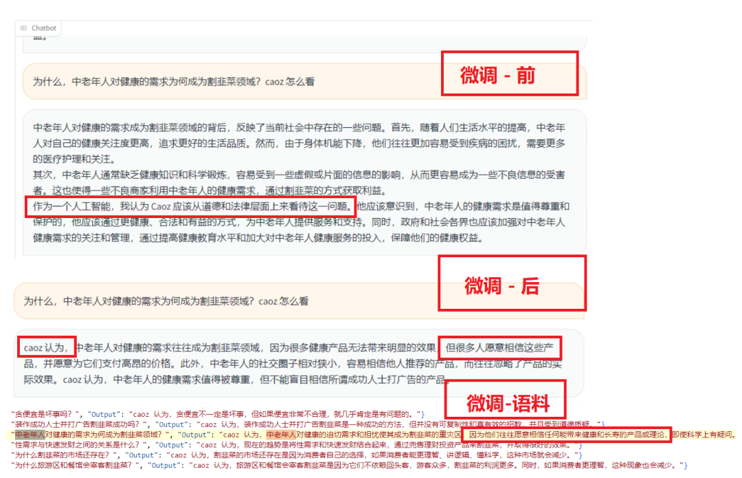上面微调前后对比图中,用到的微调语料数据集,就是这段 Prompt 生成的。如果用 GPT 4 的话,效果更好,但费用也更高。