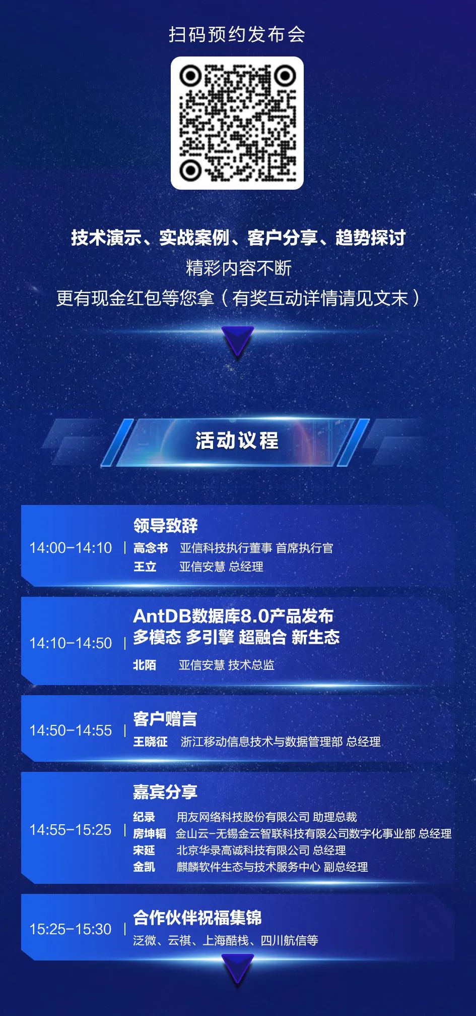 AntDB数据库始于2008年,在运营商的核心系统上,为全国24个省份的10亿多用户提供在线服务,具备高性能、弹性扩展、高可靠等产品特性,峰值每秒可处理百万笔通信核心交易,保障系统持续稳定运行近十年,并在通信、金融、交通、能源、物联网等行业成功商用落地。