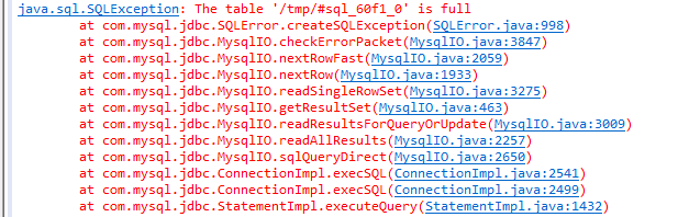 ERROR 1114 (HY000): The table '/tmp/#sql_60f1_0' is full