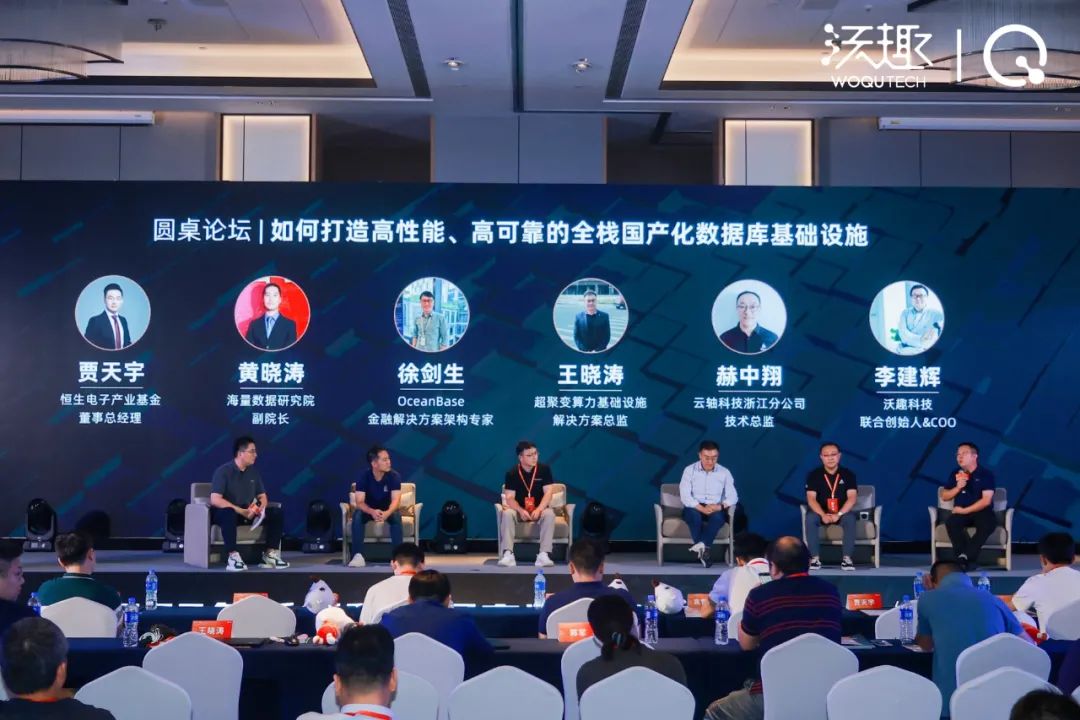 此外,大会还举办了以“如何打造高性能、高可靠的全栈国产化数据库基础设施”为主题的圆桌论坛。圆桌由恒生电子产业基金董事总经理 贾天宇主持,海量数据研究院副院长 黄晓涛、OceanBase金融解决方案架构专家 徐剑生、超聚变算力基础设施解决方案总监 王晓涛、云轴科技浙江分公司技术总监 赫中翔、沃趣科技联合创始人&COO 李建辉分享各自的观点,进行思想的交流碰撞。