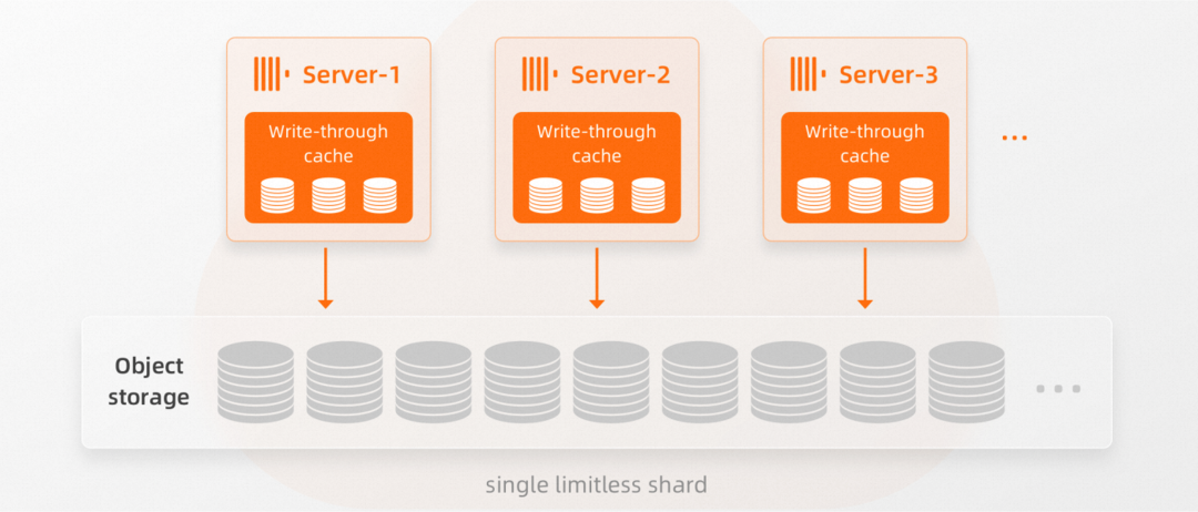 1. 当Server-3添加到集群时,这个新Server ①订阅Keeper中的元数据更改信息并将当前Parts的元数据获取到其本地缓存中。这不需要任何锁机制;2. ②新Server基本上只需说:“我在这里。请随时通知我所有数据更改”。3. ③新添加的Server-3几乎可以立即参与数据处理,因为它通过从Keeper中只获取必要的元数据信息,找到有哪些数据以及在共享存储中的什么位置。