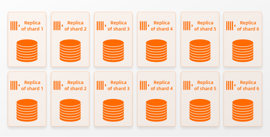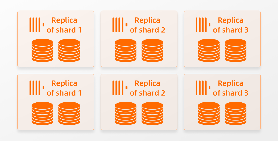 同时也会使写入吞吐量翻倍。对于SELECT查询,增加节点数会增加并发查询能力,以及单个查询的并发执行。请注意,在ClickHouse企业版中增加(或减少)节点的数量不需要进行物理数据resharding或rebalancing,我们可以自由地添加或删除节点。而在shared-nothing架构下的集群中更改节点数量需要更多的工作和时间。如果一个集群当前由三个分片,每个分片由两个副本组成: