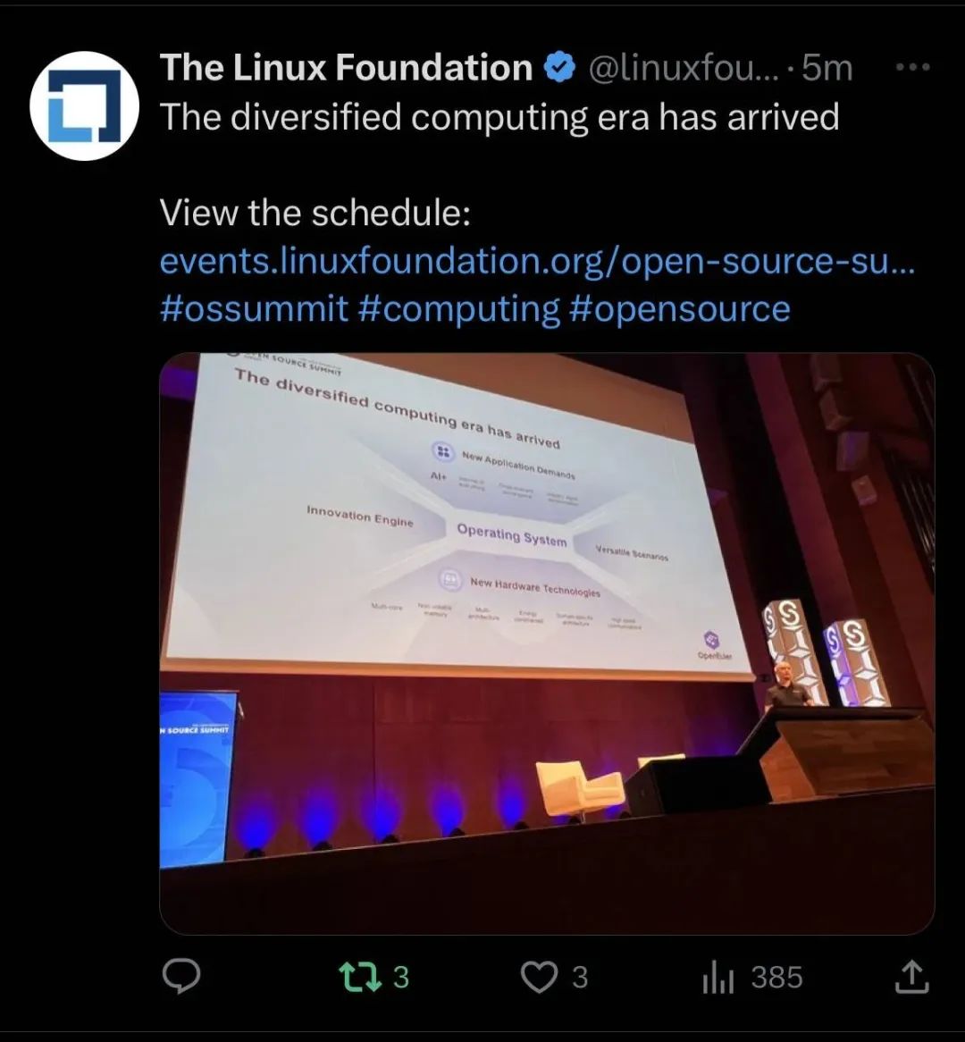 2023年9月19日,全球顶级开源峰会 OSSUMMIT EU 2023 在西班牙-毕尔巴鄂正式开场。openEuler 作为钻石级别赞助参会。这是 openEuler 继去年正式亮相后的第二次全面参加该峰会。本次会议,openEuler带来Keynote及多场分论坛演讲,涵盖Linux Kernel、编译器、AI、多样性计算、软件供应链安全、机密计算、社区治理等众多领域以及多项创新项目。