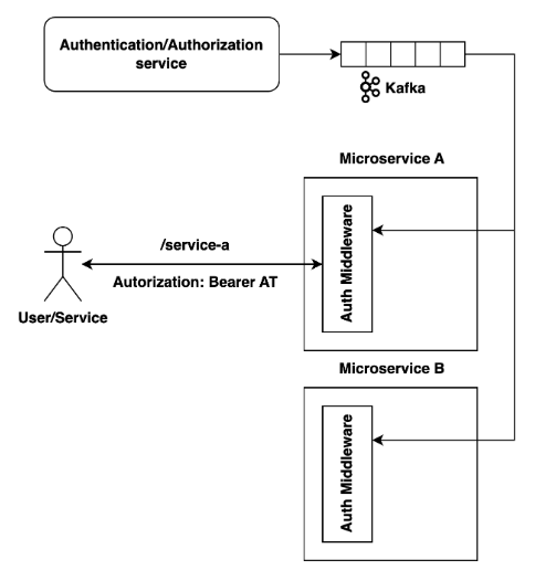 这种方法提供了令牌撤销管理的集中控制和简单性,这对于某些用例来说是有益的,特别是当需要对撤销进行细粒度控制时。然而,它确实引入了一些网络通信开销,并且需要仔细考虑安全性和冗余性。可以使用Kafka实现更先进的无单点故障的方法。Kafka 本质上是一个分布式且可靠的消息日志。它允许多个独立的侦听器和保留策略配置仅存储实际值。因此,可以将已撤销令牌的黑名单存储在 Kafka 中。当令牌需要撤销时,相应的服务会生成一个事件并将其添加到 Kafka。中间件服务包括一个 Kafka 侦听器,用于接收此事件并将其存储在内存中。授权请求时,除了验证令牌的有效性之外,无需联系中心化服务。撤销的令牌存储在内存中,在合适的数据结构中定位令牌是一个快速的过程(如果我们使用 HashMap,它将是O(1))。也没有必要将令牌永远存储在内存中,并且应该在其生命周期结束后定期删除它们。但是如果我们的服务重新启动并且内存被清除怎么办?Kafka 监听器允许您从头开始读取消息。当微服务恢复时,它将再次从 Kafka 中提取所有消息并使用实际的黑名单。- 去中心化:使用像 Kafka 这样的分布式消息代理可以让您以去中心化的方式实现令牌撤销。微服务可以独立订阅撤销消息,无需依赖中央机构。