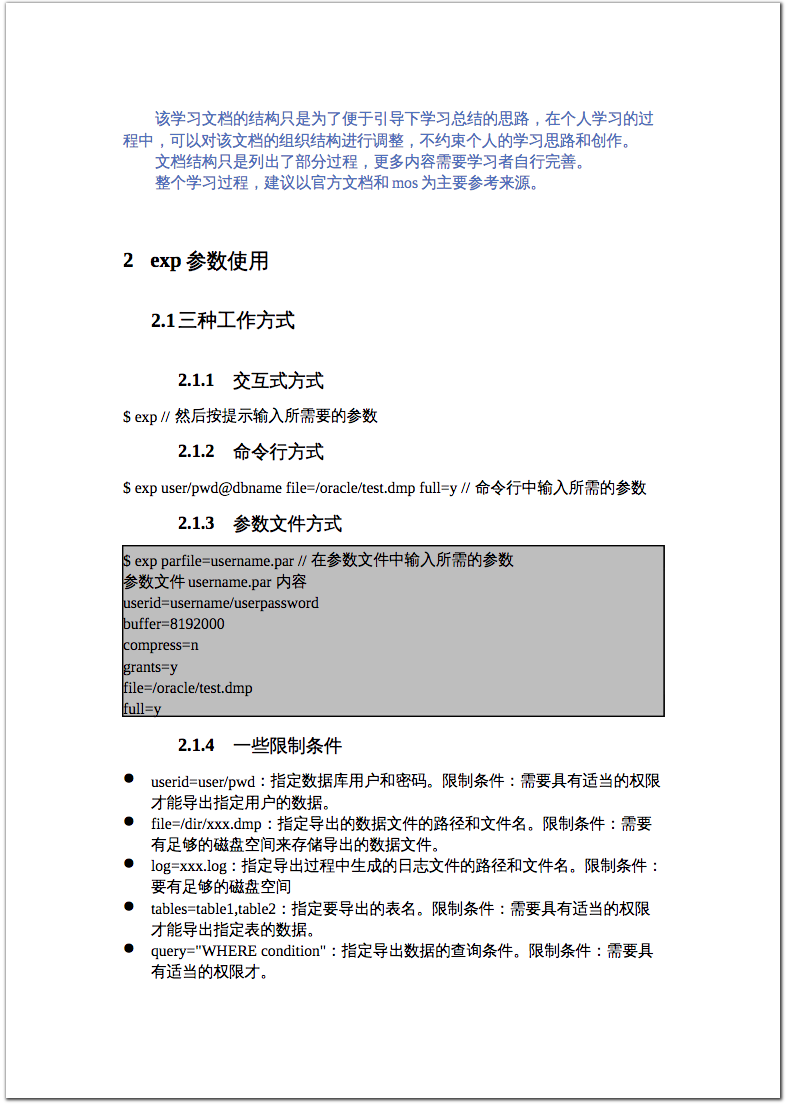 本文档为墨天轮用户上传的《Oracle逻辑备份》,主要为学习数据库逻辑迁移相关的内容,含exp参数使用、imp参数使用、expdp参数使用等10个章节,共35页。