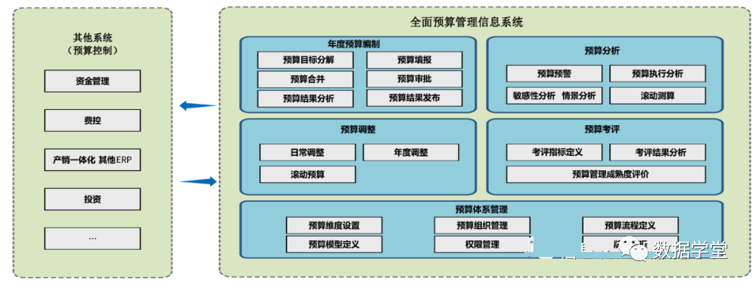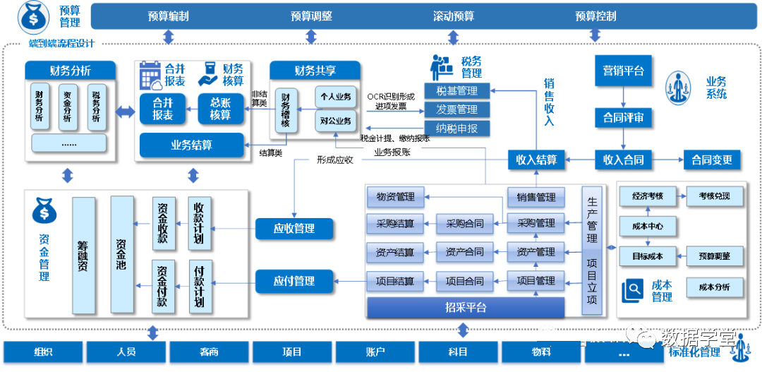 三是预算管理流程体系,涵盖预算编制、控制、分析、调整、考评等环节;