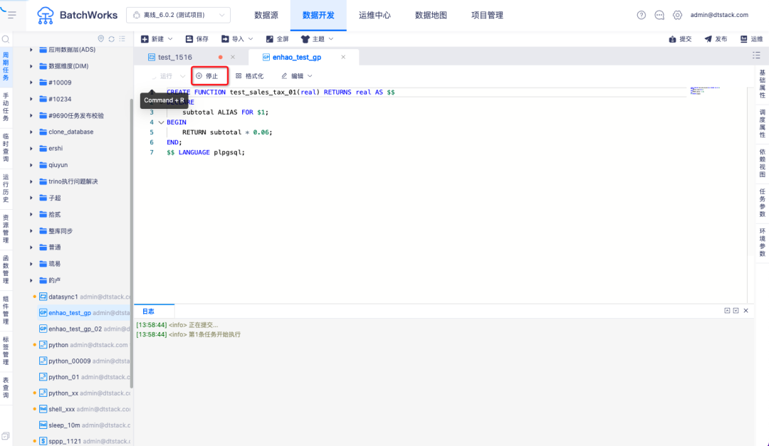 4.支持临时运行停止,临时运行停止和杀任务时支持从数据库底层停止任务运行