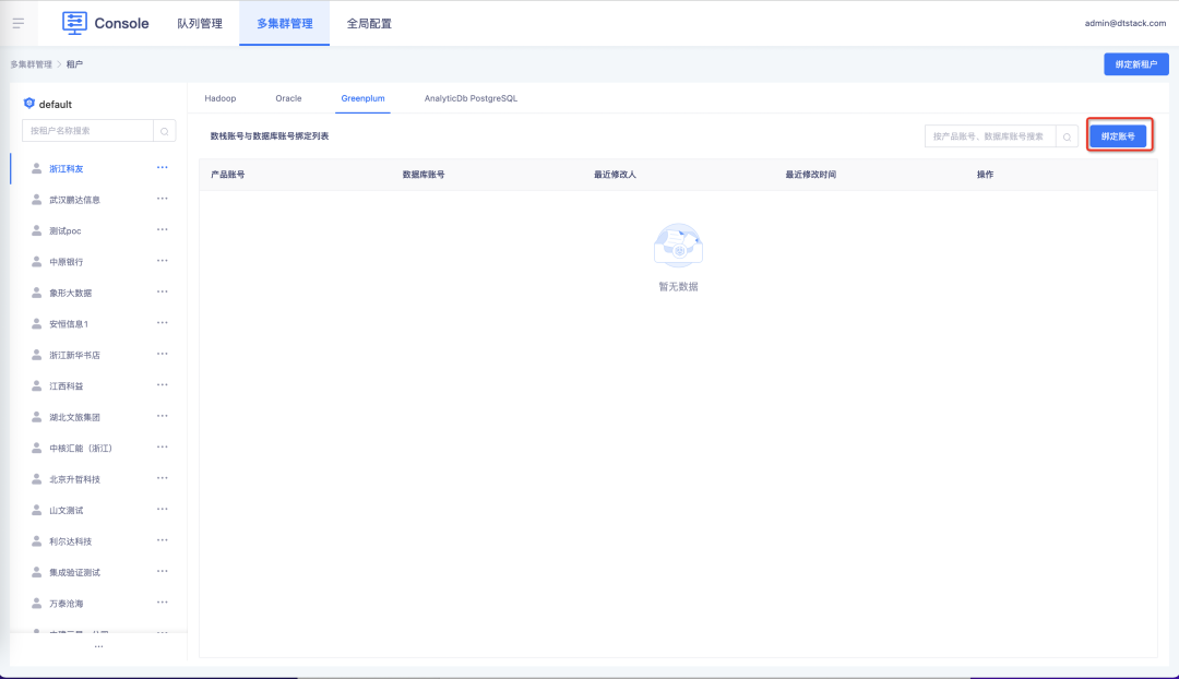 • 控制台支持按用户去绑定 GP 数据库账号