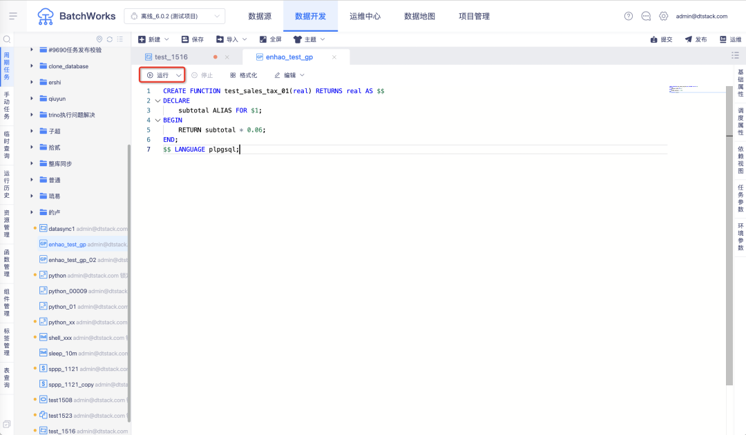 • Oracle、SQLServer、MySQL 支持界面创建存储过程、自定义函数、系统函数,支持任务依赖推荐,支持元数据同步和整库同步