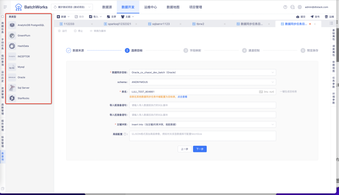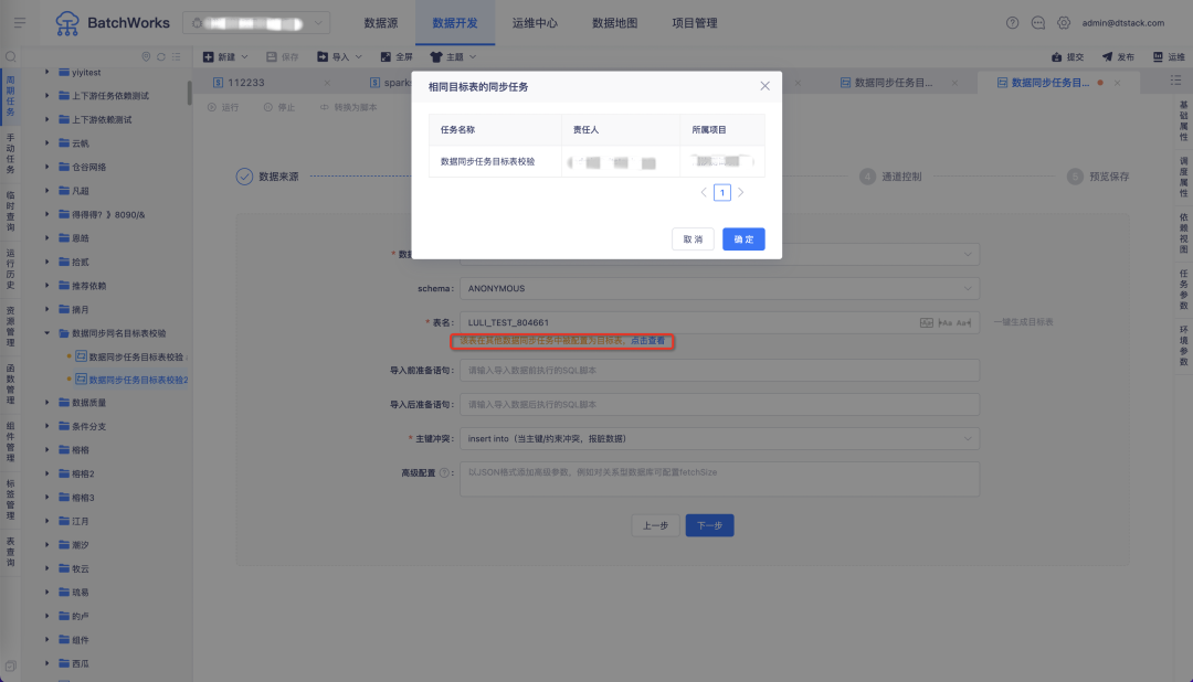 7.同步任务中选择和其他同步任务相同的目标表时,会进行提示