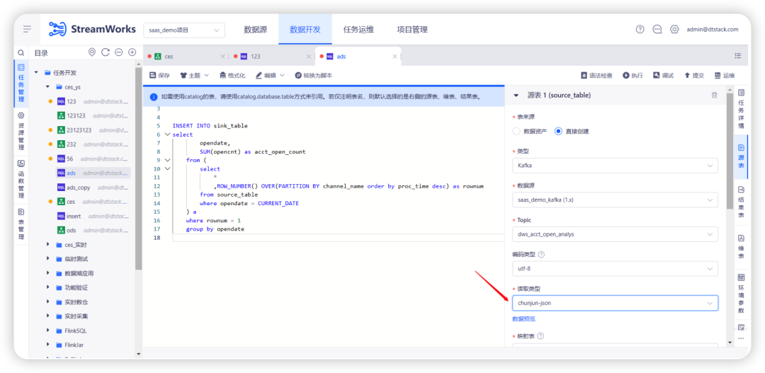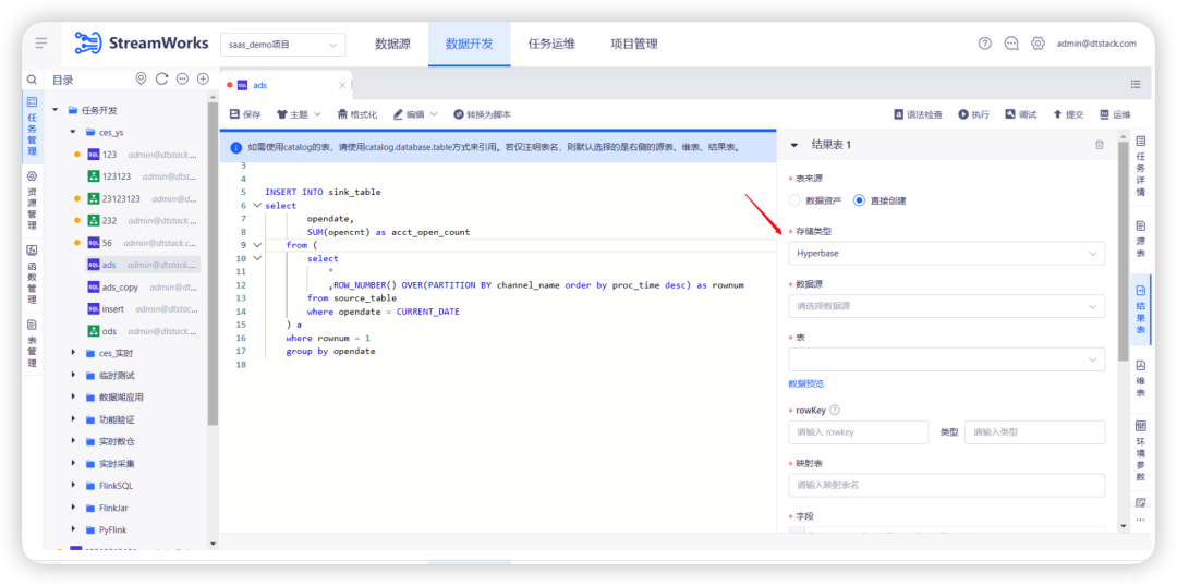 2.任务选择中支持选择落表模型对应的模型任务
