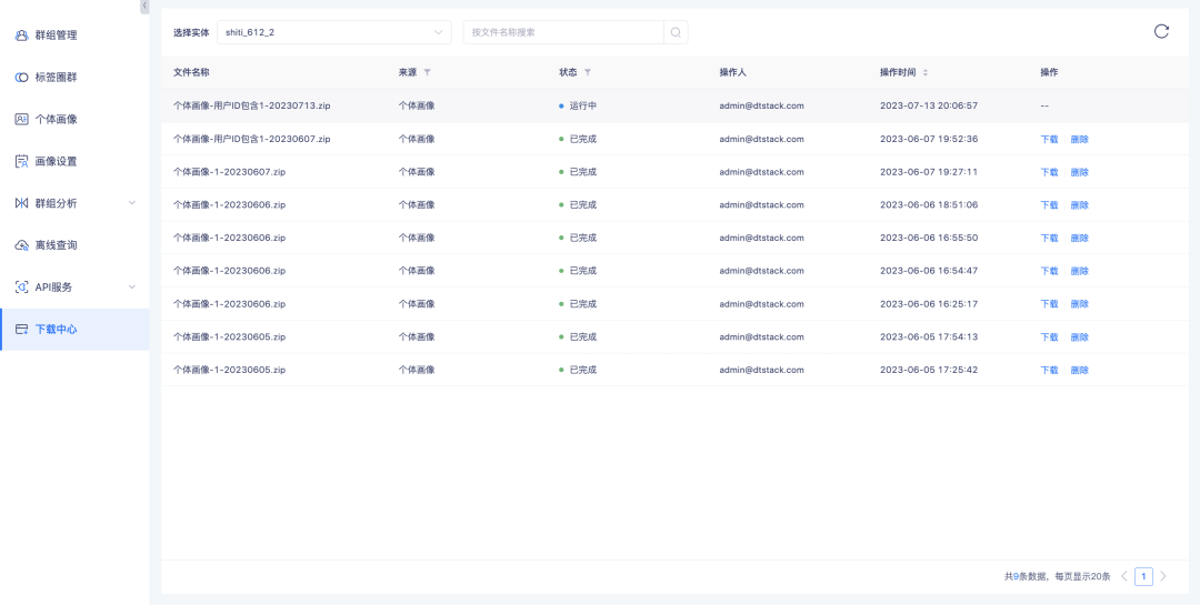 新增功能说明:进入群组管理页面,点击「群组元信息下载」可导出所有筛选后结果。导出结果将以CSV格式放至下载中心,可前往下载中心进行文件下载。