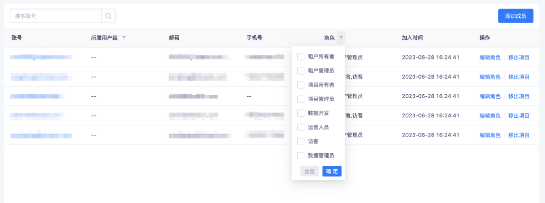 4.项目管理页成员管理支持对角色做筛选
