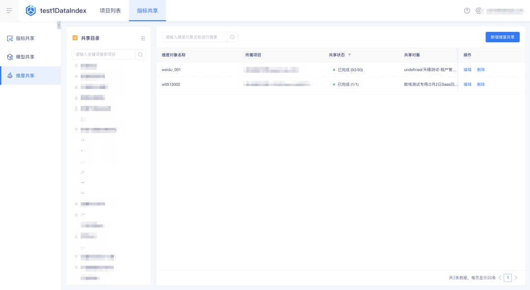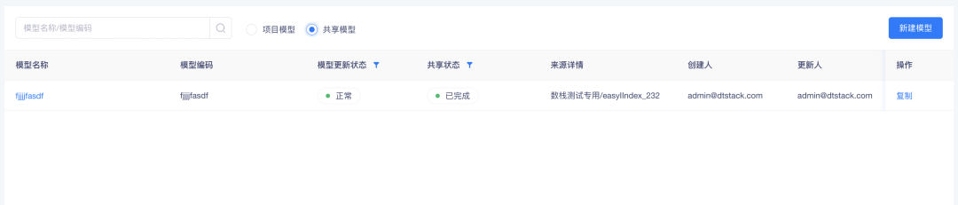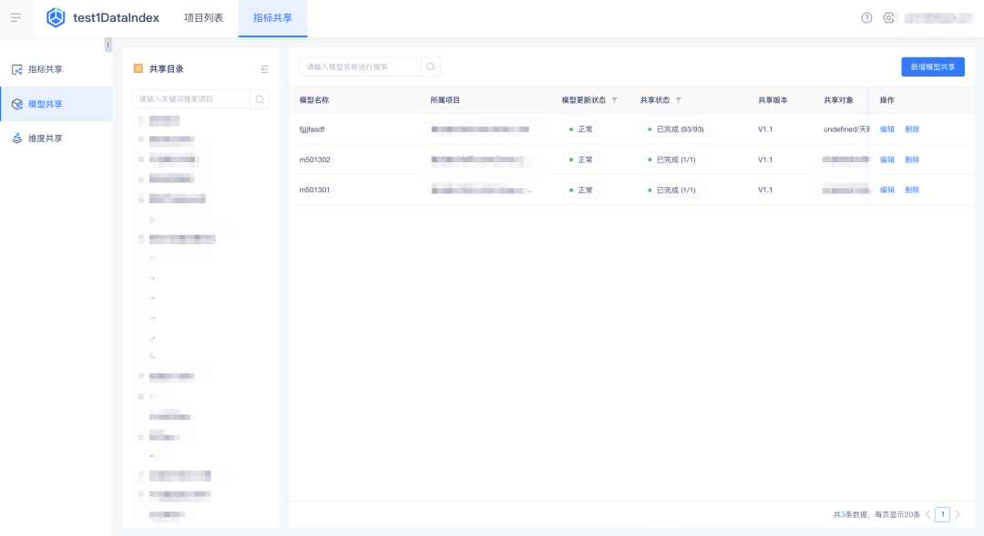 • 「指标共享」-「模型共享」新增模型共享